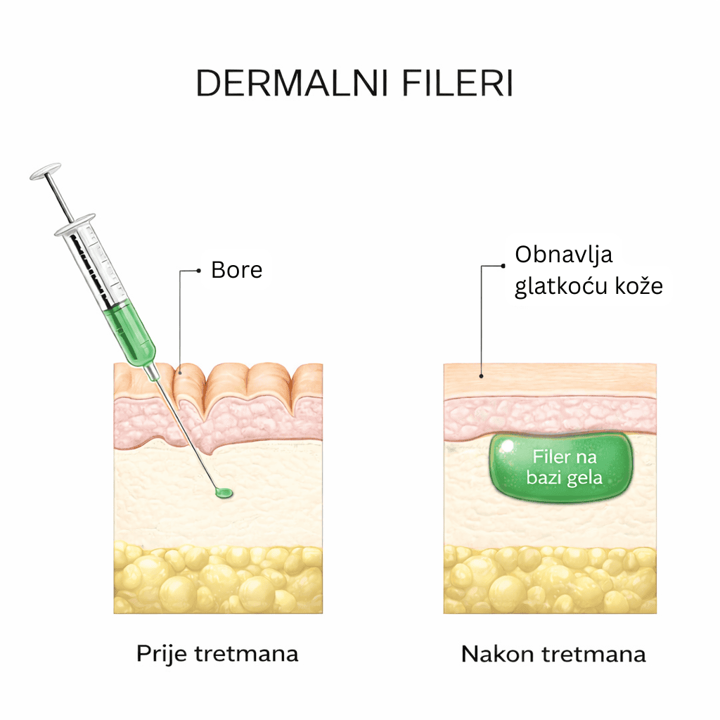 Dermalni (hijaluronski) fileri su preparati na bazi hijaluronske kiseline, supstance koja se prirodno nalazi u našem tijelu.